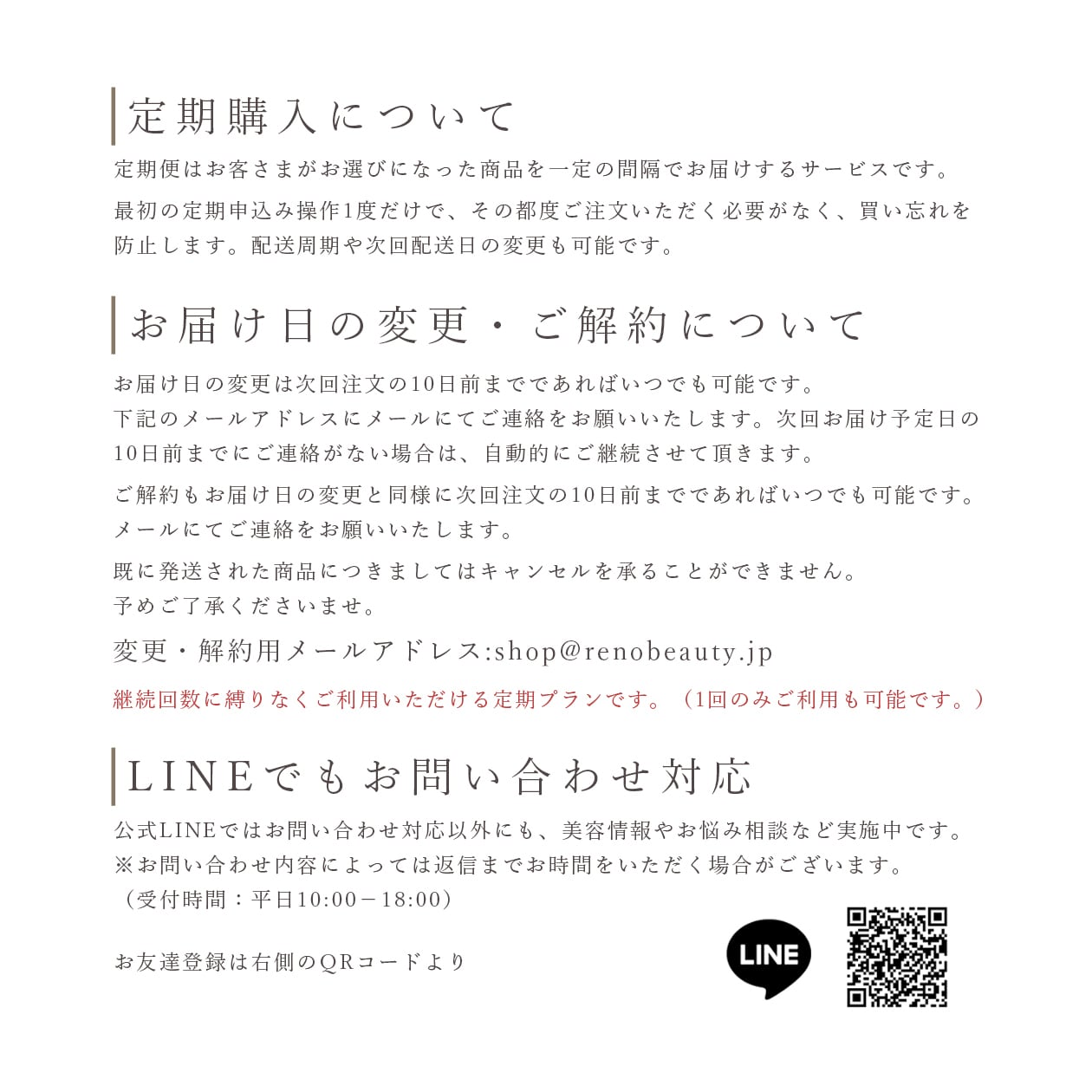 いつでも解約可能ですが、次回ご注文の10日前までにご連絡をお願いいたします。